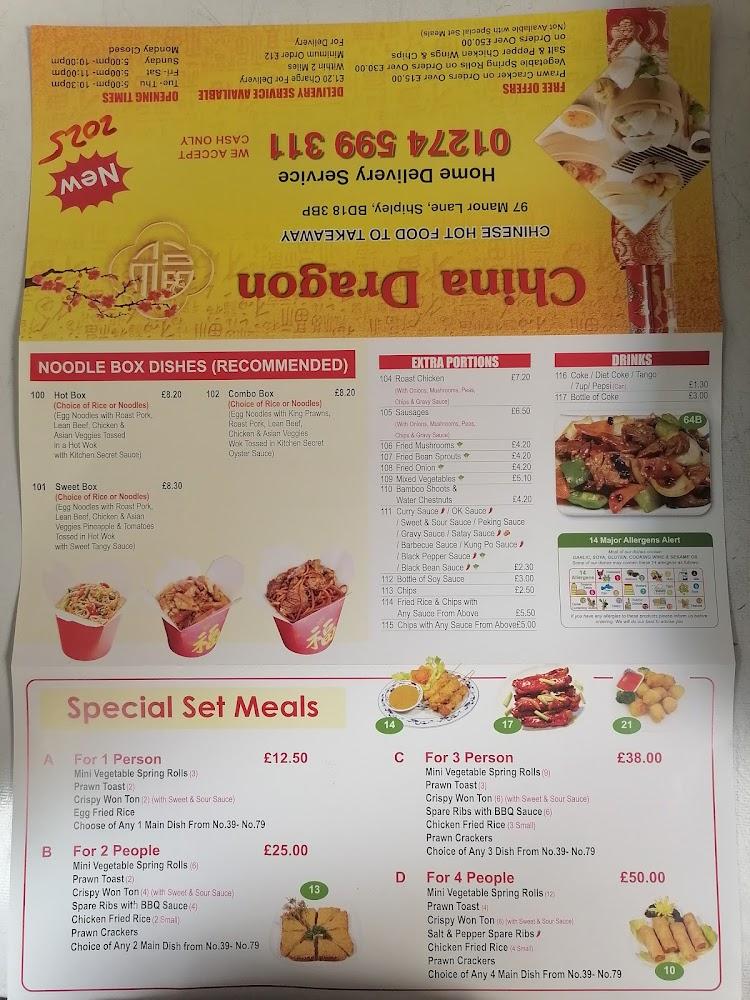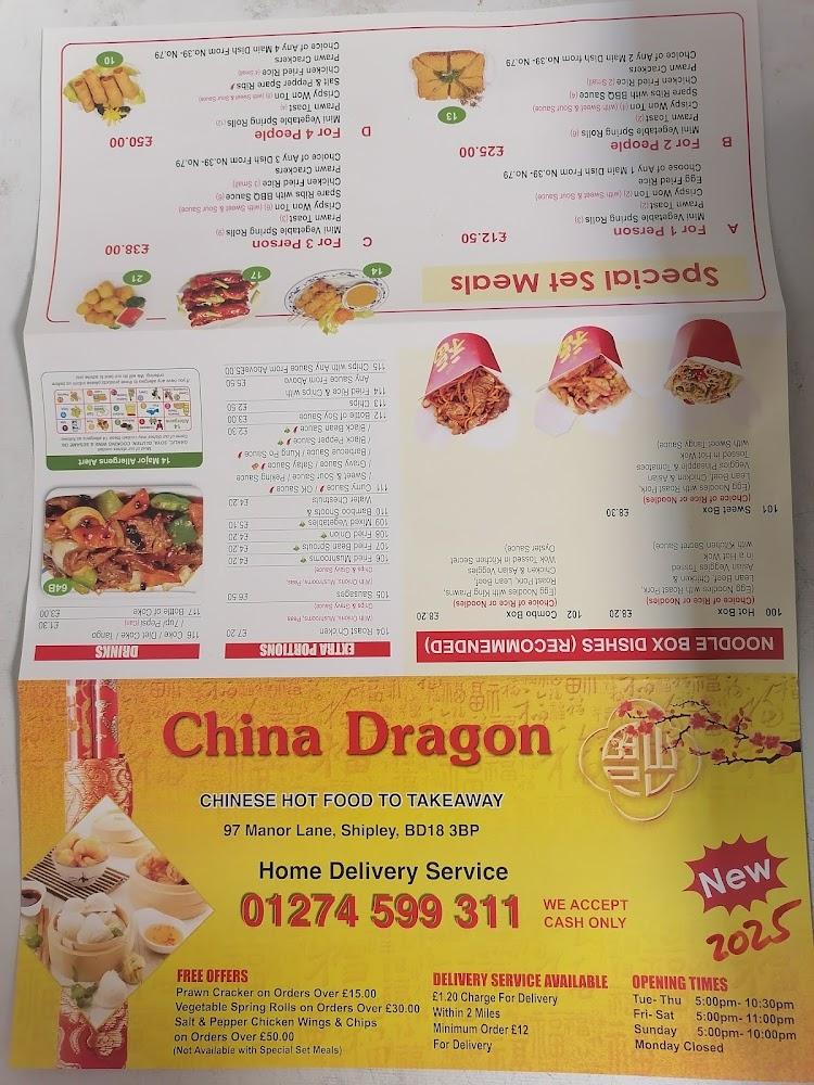 Situated conveniently in Shipley, China Dragon is an inviting destination for those craving authentic Chinese cuisine. The restaurant boasts a warm and casual atmosphere that makes it perfect for both solo meals or dining with a group. A wheelchair-accessible entrance and seating ensure that everyone can enjoy a meal here without hassle. Customers appreciate the option for dine-in, takeaway, or delivery, making it versatile for any situation, especially after a long day.
